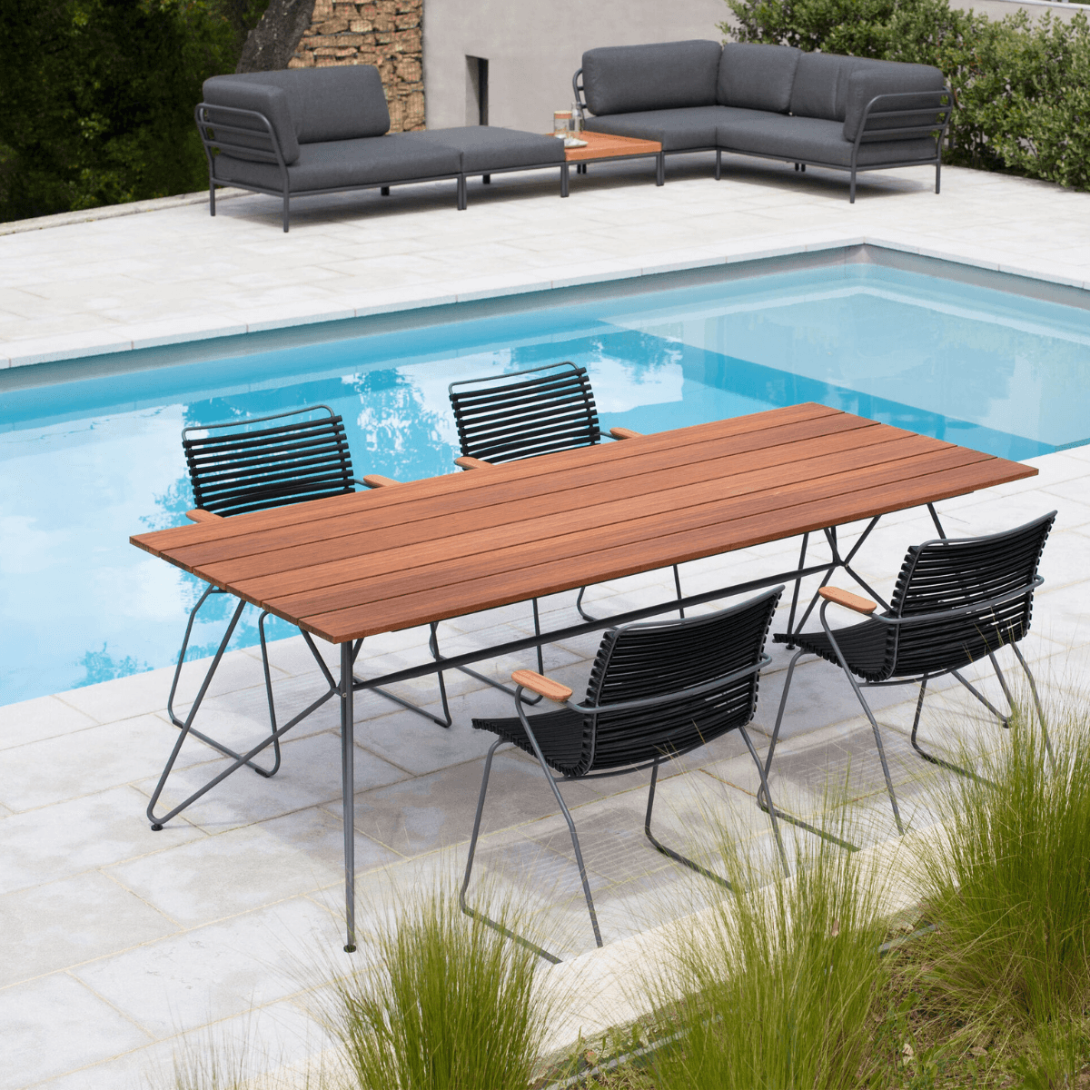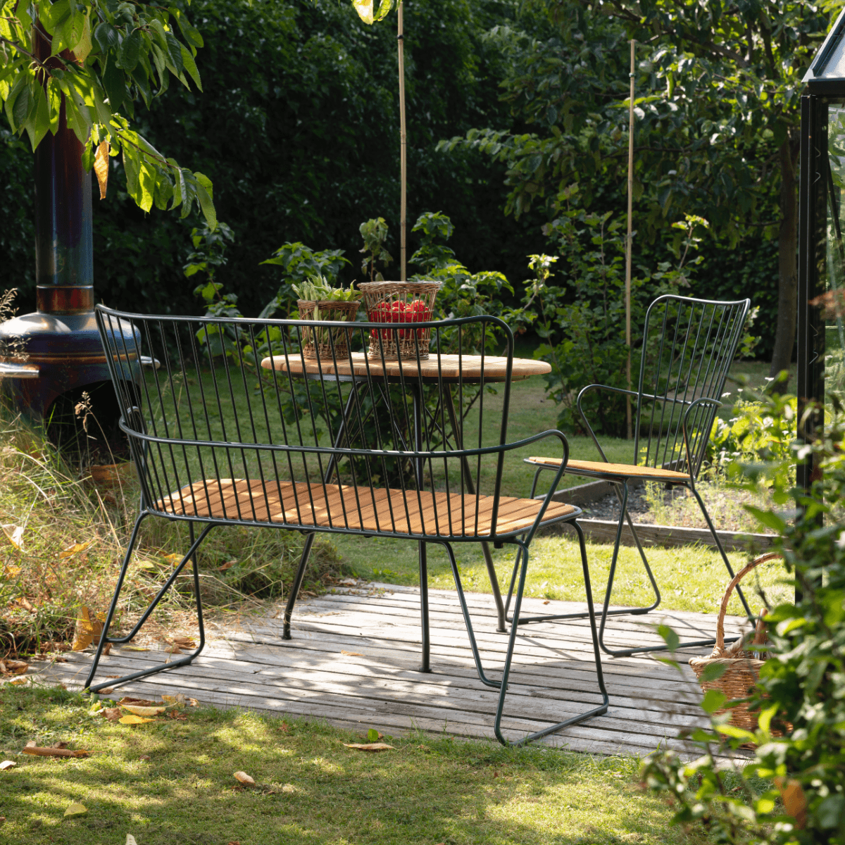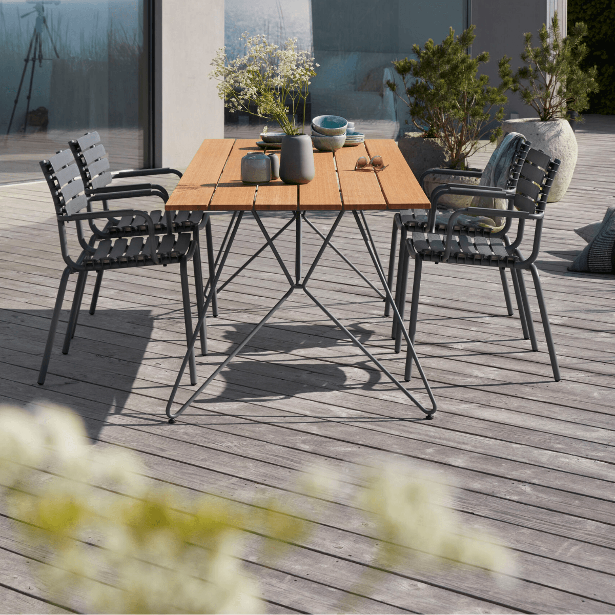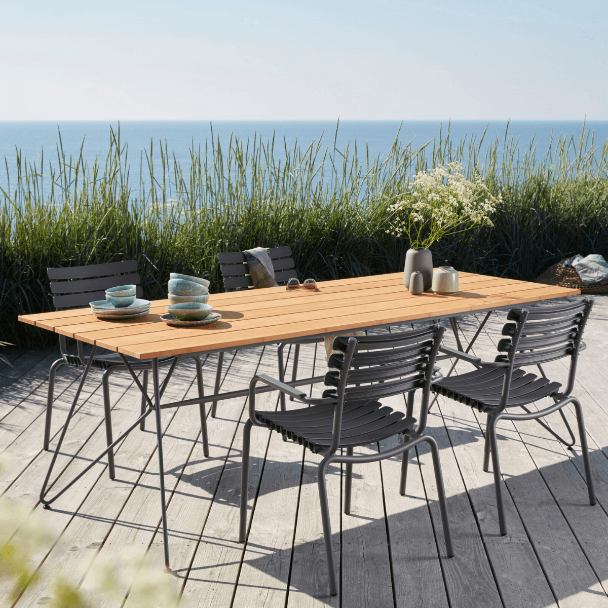 HOUE is committed to sustainable efforts by crafting several of their collections from upcycled materials to reduce the amount of waste in landfills. Their ReClips collection, for example, is made from 97% recycled household plastics using innovative Danish technology. By offering replacement parts like armrests and lamellas, they also ensure their outdoor furniture is easy to repair and maintain like new for the longest lifespan possible. With thoughtful attention to every joint, finishing detail, and manufacturing partner they choose to collaborate with, HOUE designs beautiful outdoor furniture that’s as environmentally-friendly as it is comfortable to enjoy. These pieces can also be ready to ship for free in as little as 2-3 weeks or less!