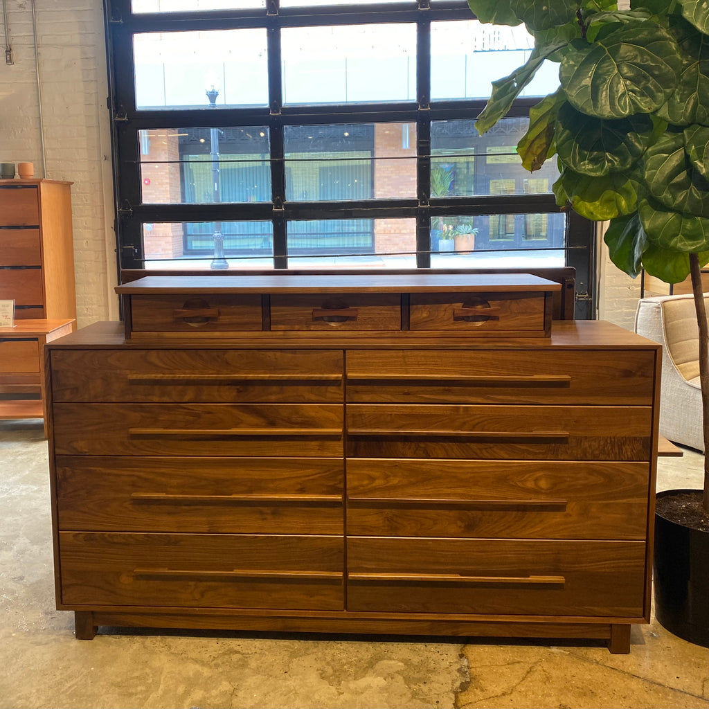 The Sloane dressers and nightstands feature a clean, modern design with a subtly modern square leg base. Sloane case pieces have a substantial presence in the room while keeping a contemporary profile. Includes a Drawer Interlock System which allows only one drawer per vertical column of drawers to be open at a time as a safety feature.