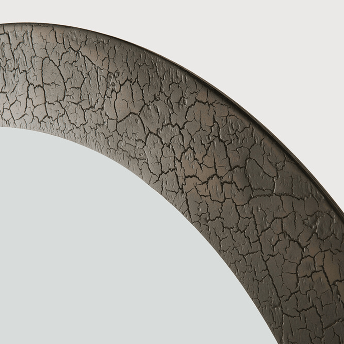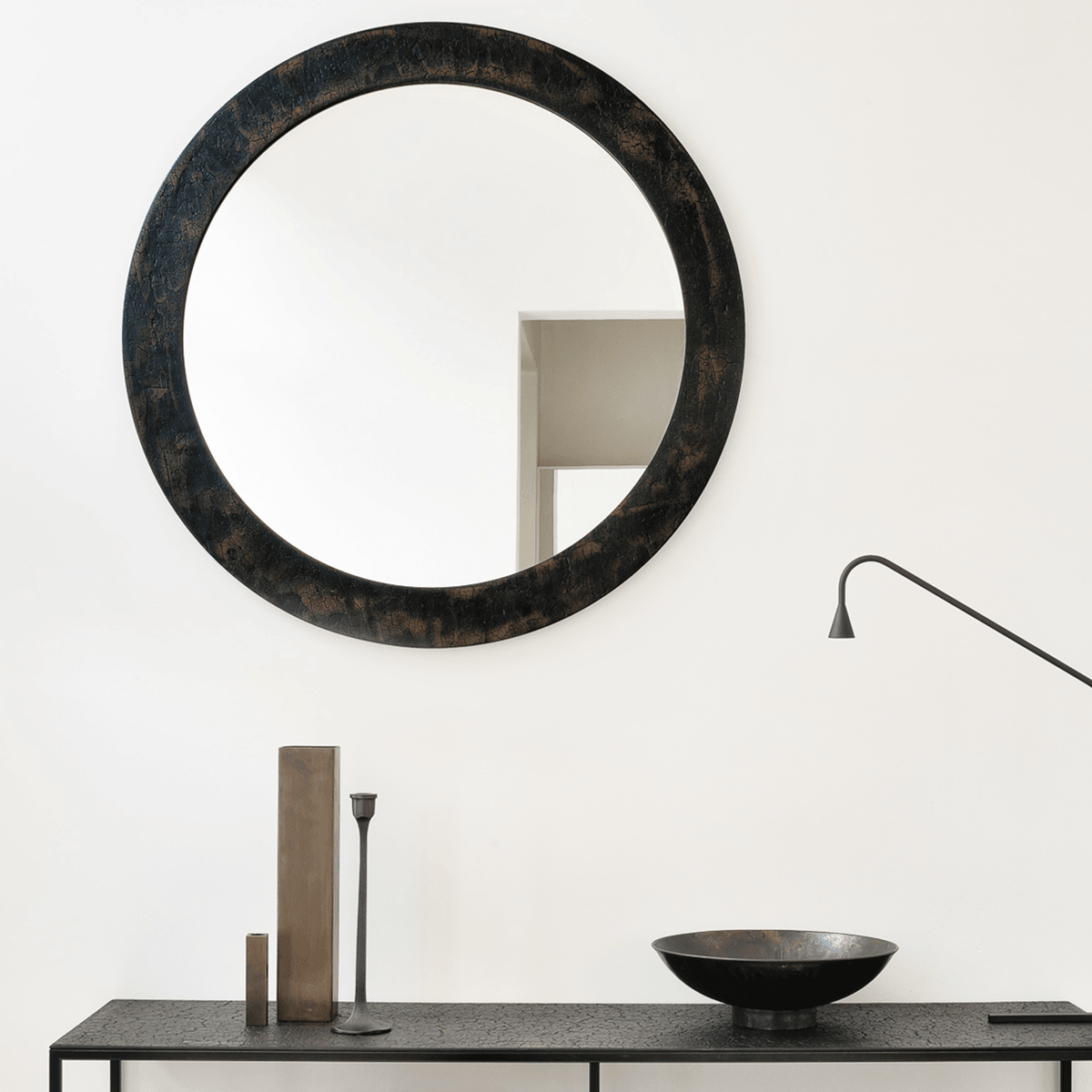 Relying on some of the oldest artistic ancestral techniques, the Sphere wall mirror's frame is shaped by Ethnicraft's skilled artisans. Natural mineral powders and color pigments blend together to form earthy tones and unique textures. Add a bold touch of elegance to any space.