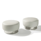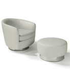 Designed to remedy footrest dilemmas, Thayer Coggin's Spin swivel ottoman is a versatile creation that complements their classic modern lounge chairs and sofas.