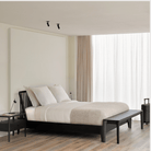 With its one drawer, open space, and slightly tapered legs, the Spindle bedside table is the perfect no-nonsense companion for the striking Spindle bed.