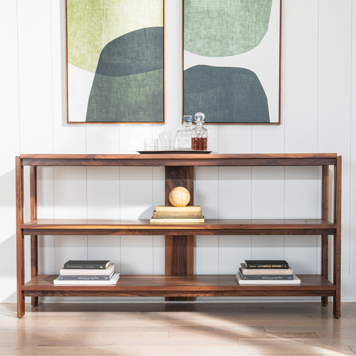 Crafted using traditional methods and materials, this console is meticulously handcrafted from solid wood in North Carolina.