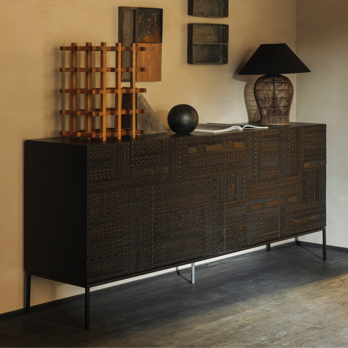 The Tabwa collection offers timeless centerpieces of minimalistic silhouette with a unique and distinct character. Contemporary wooden furniture are transformed into unique pieces of art where each pattern is carefully carved by our artisans. Named after the Tabwa culture from Central Africa, the collection’s inspiration comes from their fondness for linear geometric motifs.