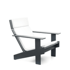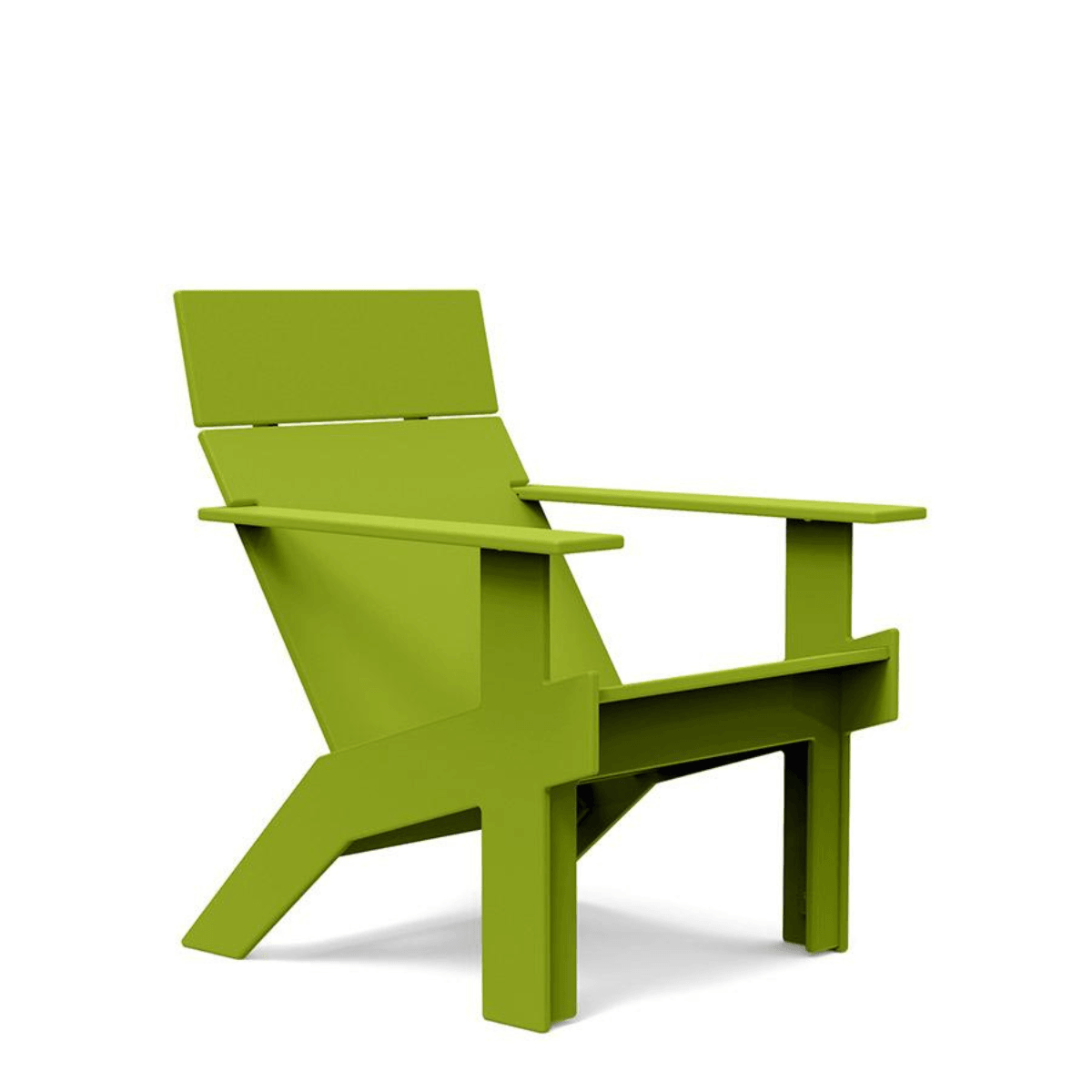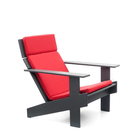 This Lollygagger outdoor seating set features two Tall Lollygagger Lounge Chairs and two Lollygagger Lounge Cushions. These chairs are a modern take on the classic Adirondack chair and are designed for comfort and modern style. The Tall Lollygagger Lounge chair is similar to the classic Lollygagger Lounge Chair but has added four inches of seat height.