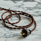With its minimal yet sophisticated look, this oak wood table lamp is a versatile piece for any living room end table or credenza. All lamps are handmade in Pennsylvania and finished at Lostine's shop in Philadelphia. Cork is fitted to each base in order to protect surfaces. The lamp cord is a decorative brown twisted cloth wire and the plug is a round Bakelite vintage inspired plug.