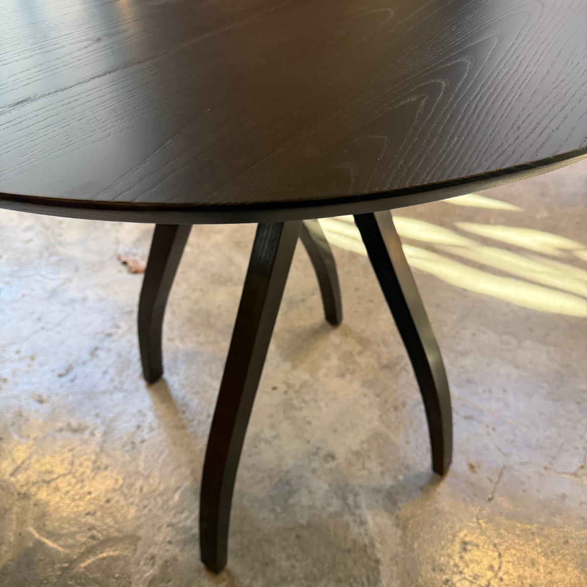 The Twist Dining Table blends mid-century modern and contemporary design with a round top and elegantly tapered legs.