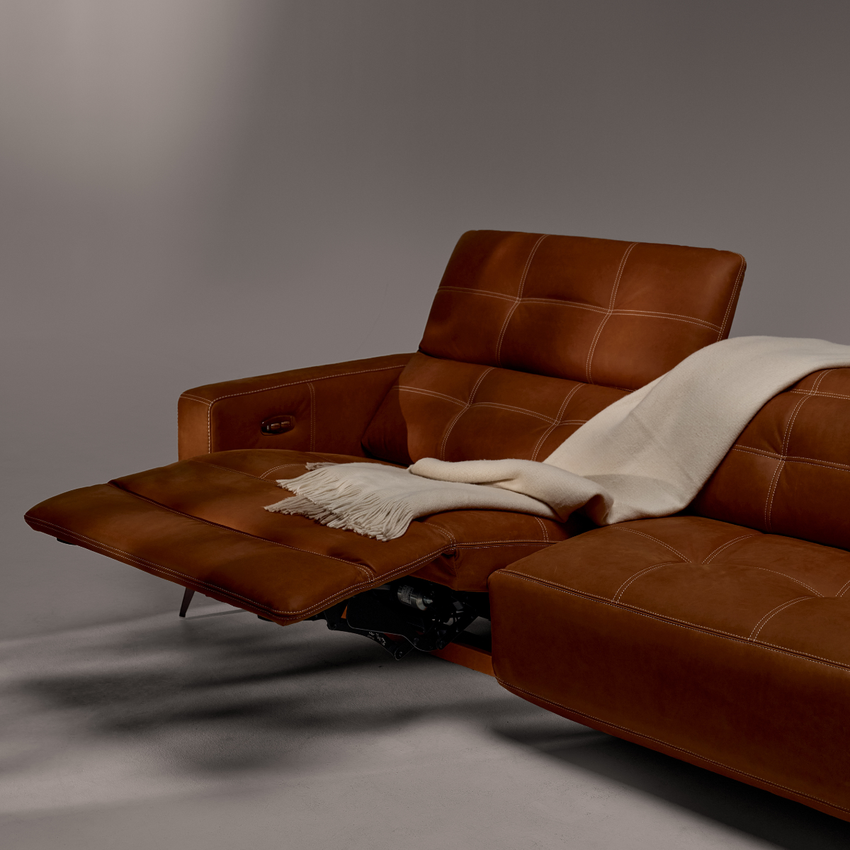 Softened track arms are accented with double-needle top-stitch, while a metal angled leg creates a dramatic effect. Add even more design detail by adding a contrasting stitch available in a multitude of colors. The Style in Motion I-series transforms into a dynamic pitch when activated, conforming to your body for endless relaxation positions. It features a motorized headrest that operates independently from the motorized footrest allowing for personalized comfort, while zero wall clearance need means it's perfect for every space.