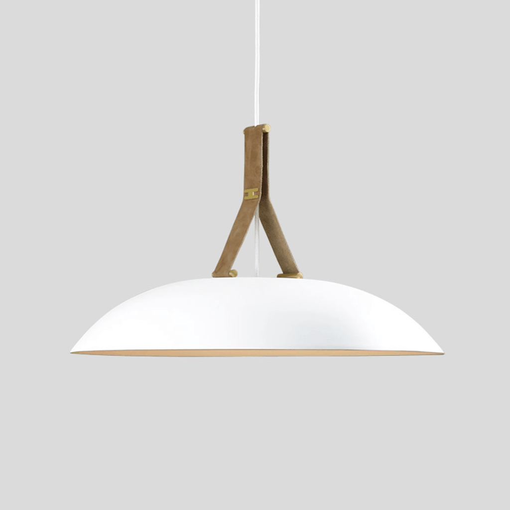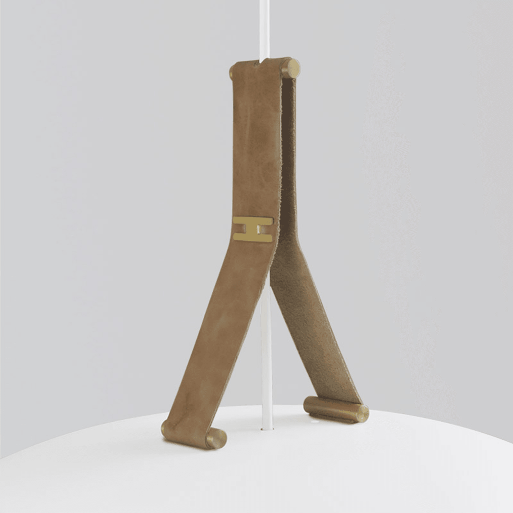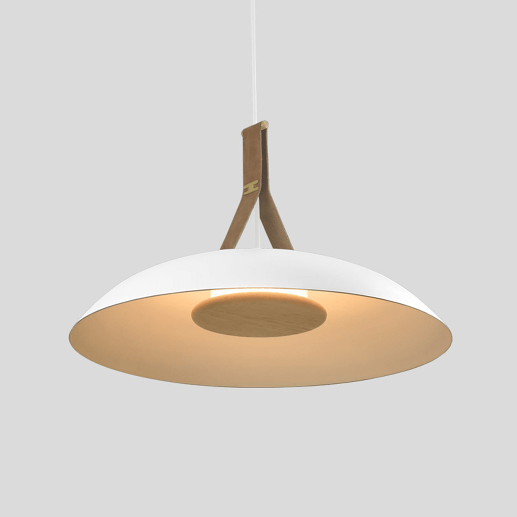 The handcrafted Volo pendant is a celebration of natural materials. The solid hardwood, brass finish, leather, and aluminum showcase the purposeful design that went into each detail. The indirect LED light source emits light of beautiful quality.