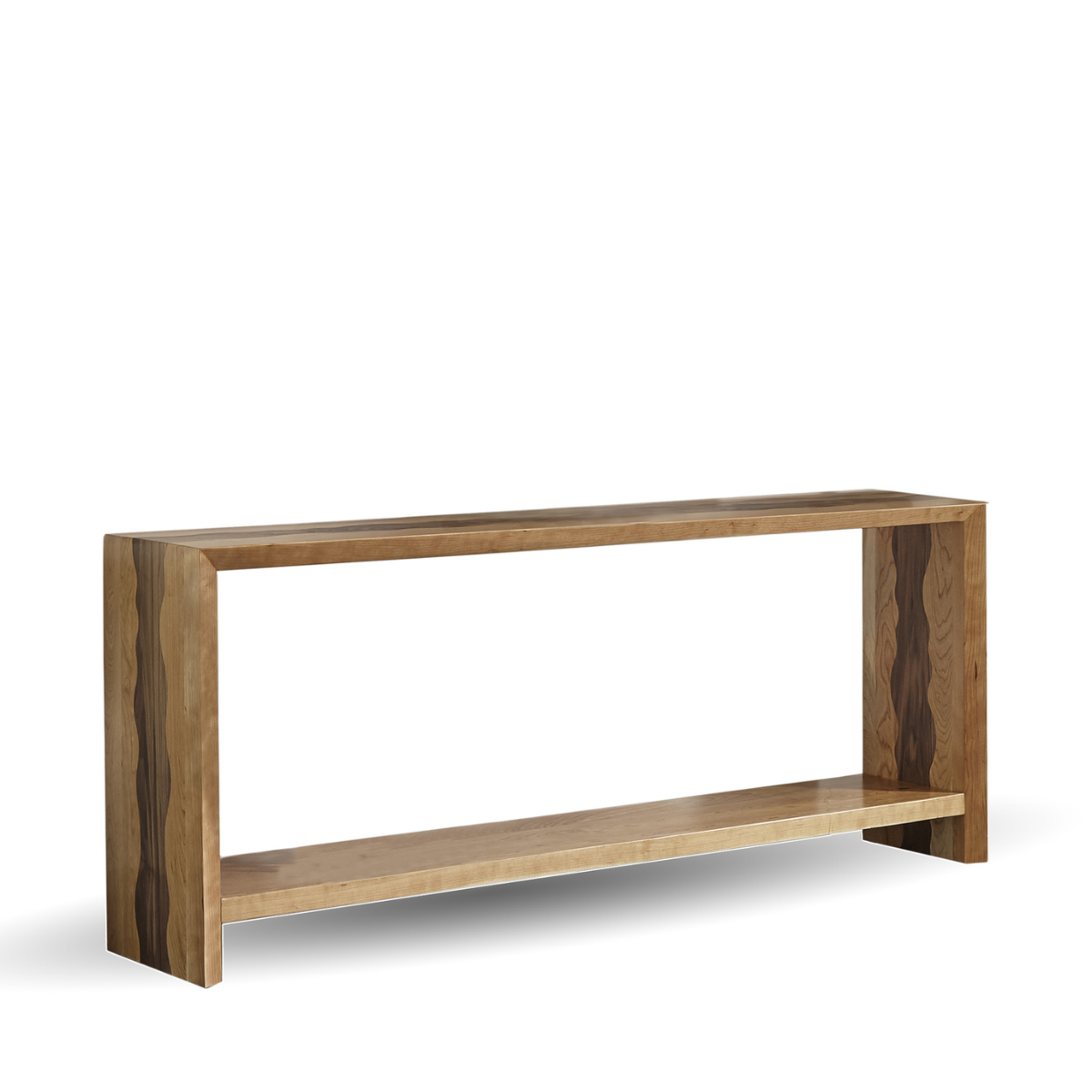 Handcrafted in North Carolina by experts, the Waterfall console features a strong construction made of solid maple and walnut, with a clear finish that highlights its timeless design. Ready to be shipped within 2 weeks.