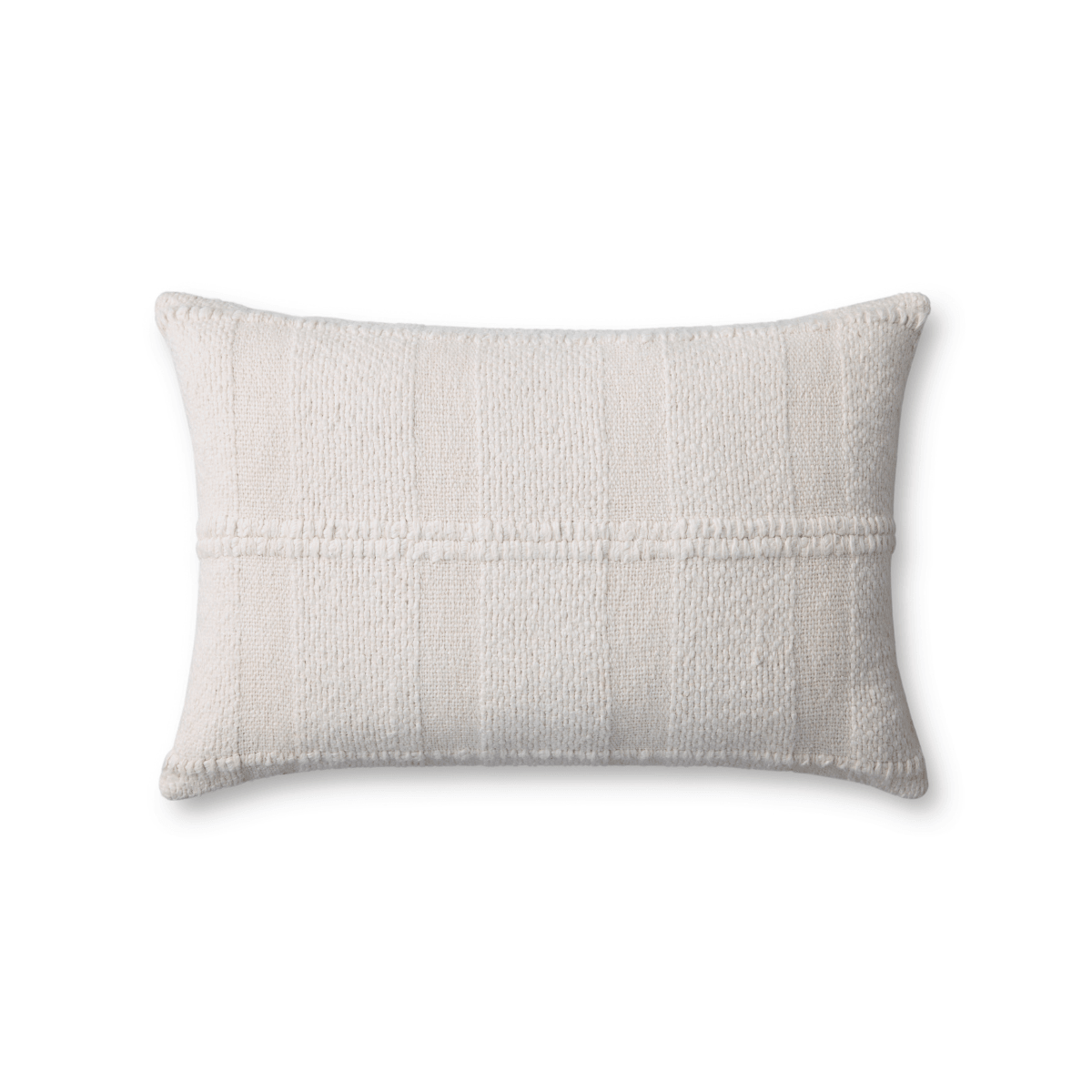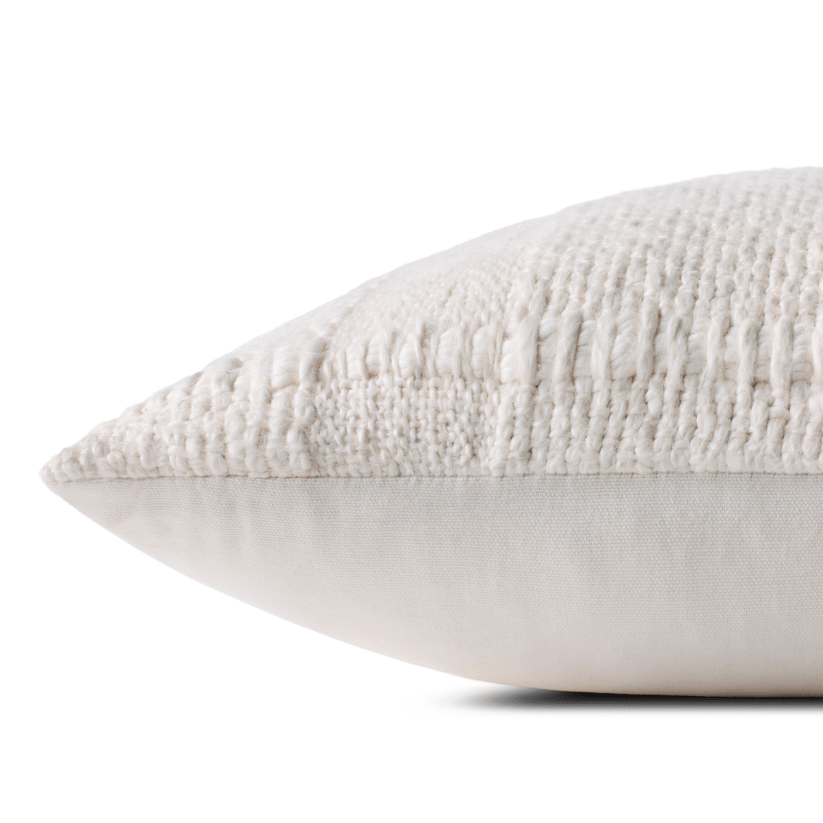 This handwoven ivory throw pillow is the perfect textured neutral, featuring a textured white-on-white grid pattern.