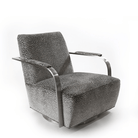The Zac swivel chair is one of Thayer Coggin's new modern classics designed by Ransom Culler. Zac features crisply tailored upholstery, a memory swivel base, and sleek metal arms and base.